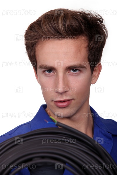 Человек с мотком кабеля