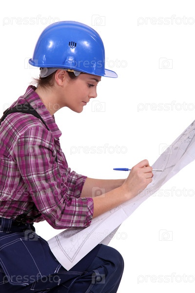 Архитектор в профиль с чертежами