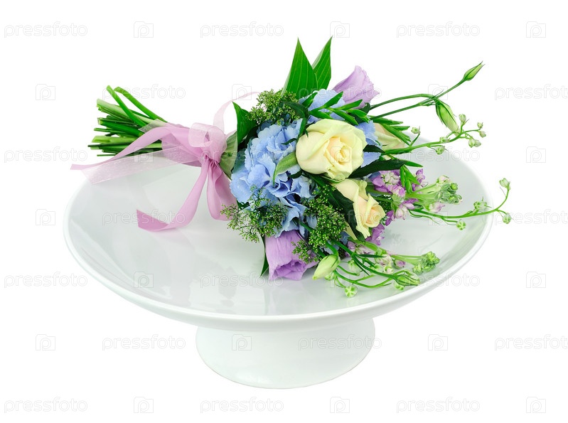 Букет цветов на белом блюде