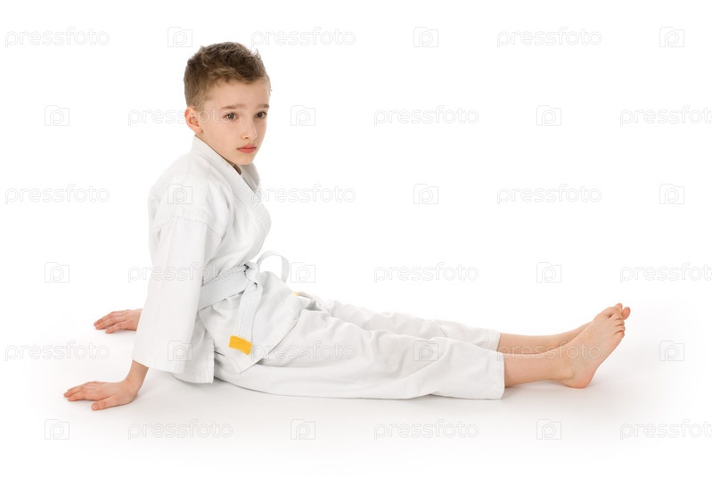 Мальчик в кимоно сидит на полу