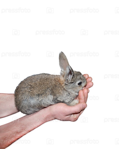 Небольшой красивый кролик в руке