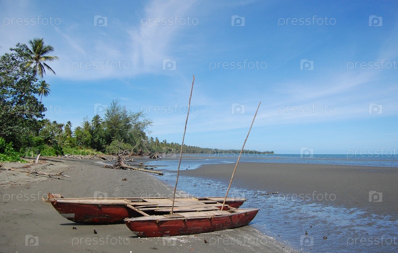 Лодки на пляже Папуа-Новая Гвинея