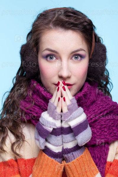 Женщина в шарфе и свитере зимой
