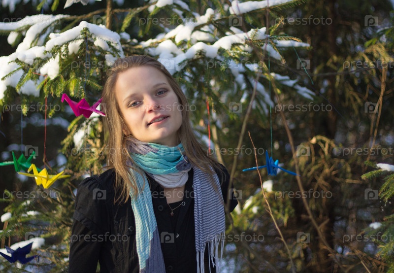 Красивая девушка на прогулке в лесу