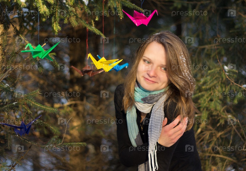 Красивая девушка на прогулке в лесу