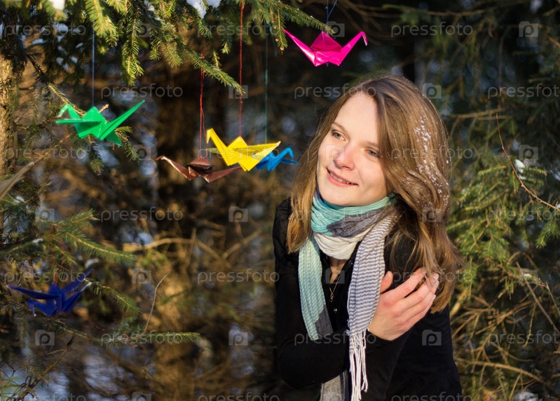Красивая девушка на прогулке в лесу