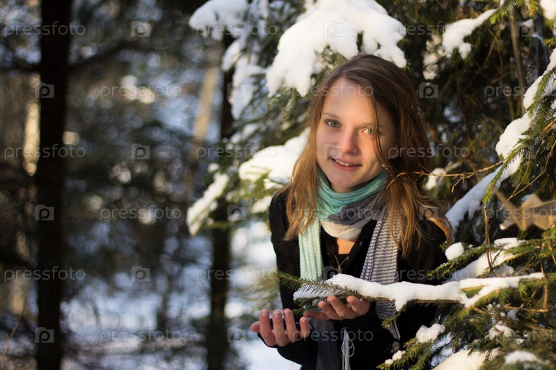 Красивая девушка на прогулке в лесу