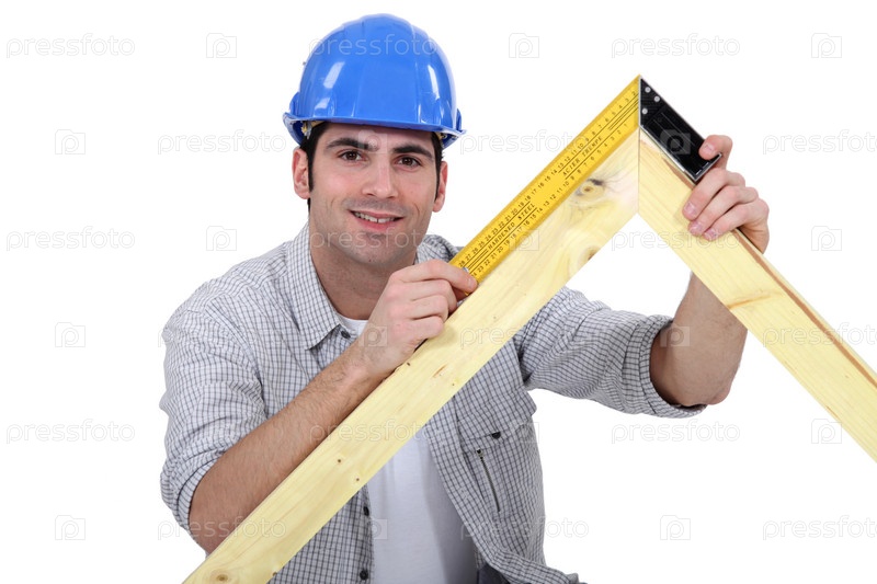 Плотник использует угольник для измерения