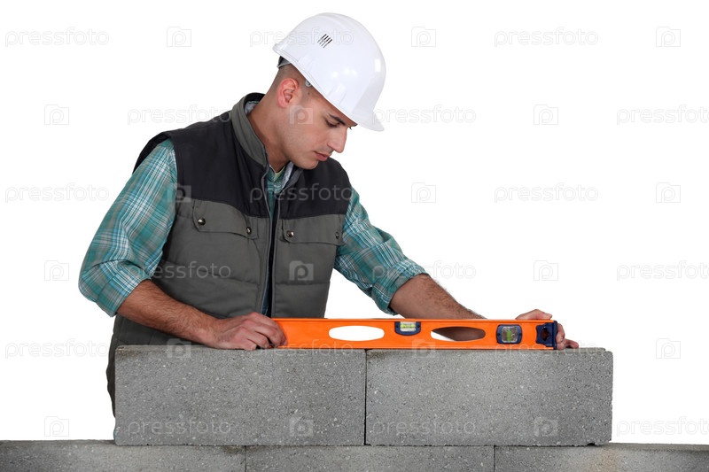 Строитель делает необходимые проверки уровнем