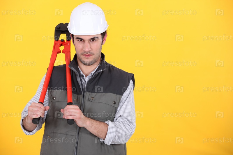 Портрет строителя с гаечным ключом
