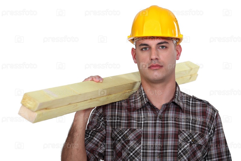 Строитель с древесиной