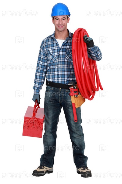 Рабочий с ящиком для инструментов