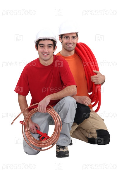 Водопроводчики с традиционными медными и современными пластиковоми трубами