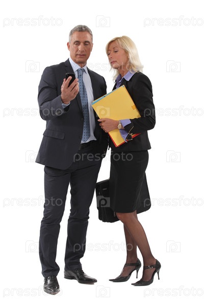 Бизнесмены читают текстовое сообщение