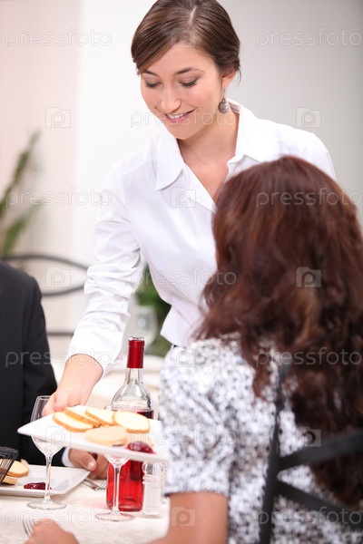 Официантка подает закуску в ресторане