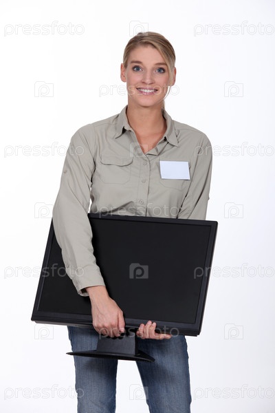 Женщина несет монитор