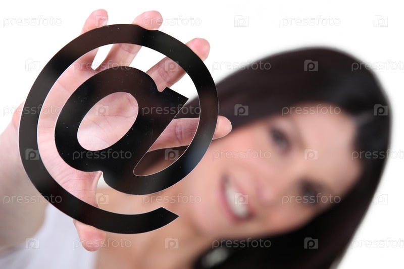 Брюнетка с символом электронной почты