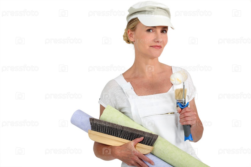 Женщина-декоратор с обоями