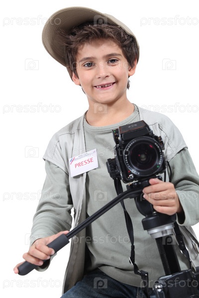 Маленький мальчик, одетый как репортер