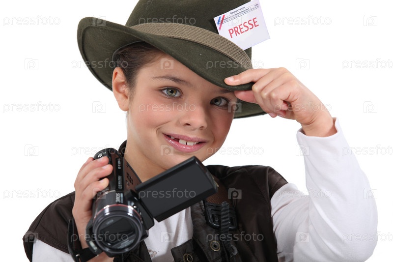 Маленький мальчик, одетый как репортер