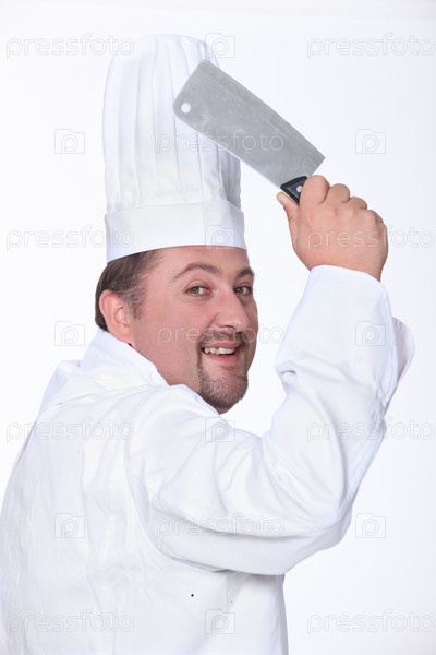 Шеф-повар в униформе с тесаком