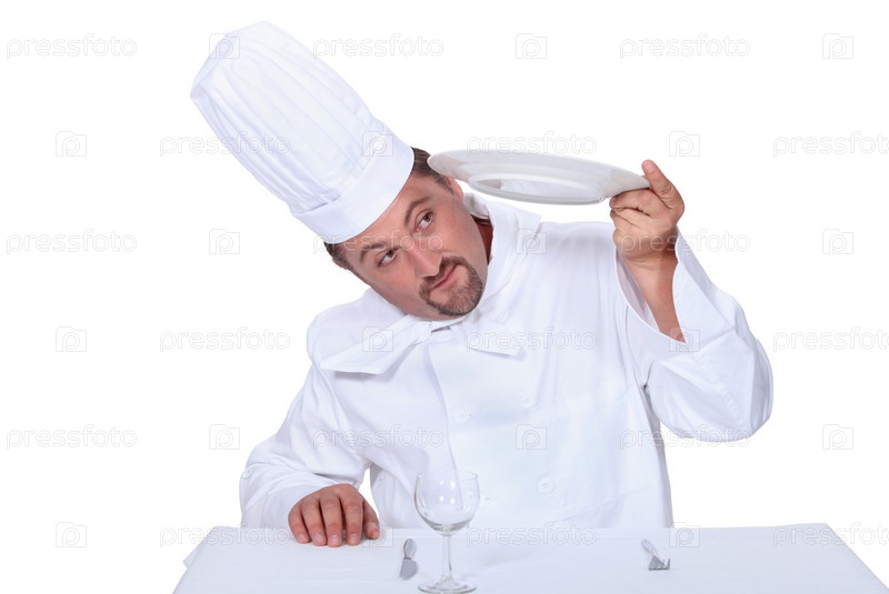 Шеф-повар проверяет чистоту посуды