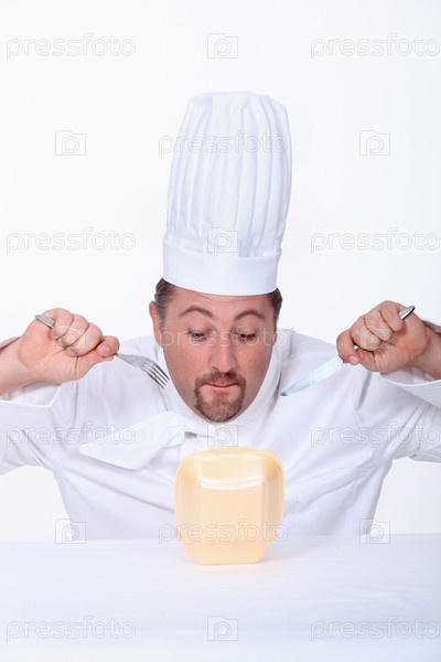 Шеф-повар с коробкой фаст фуда