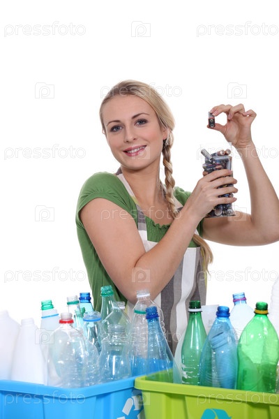 Женщина делает сортировку мусора