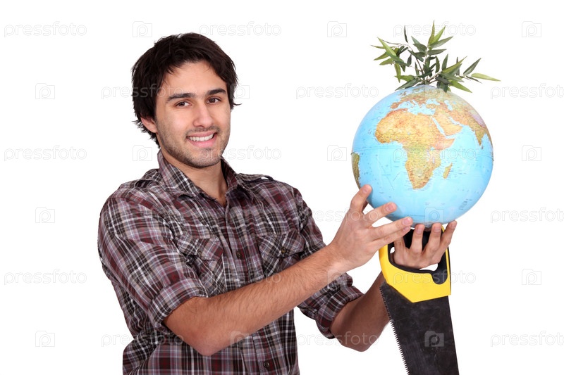 Плотник с пилой и глобусом