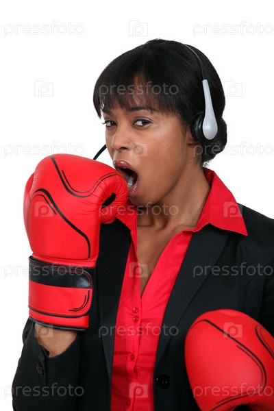 Бизнес-леди в боксерских перчатках
