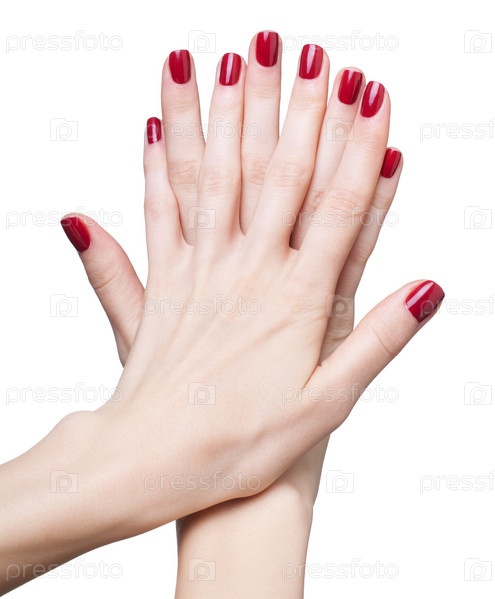 Руки с красным маникюром