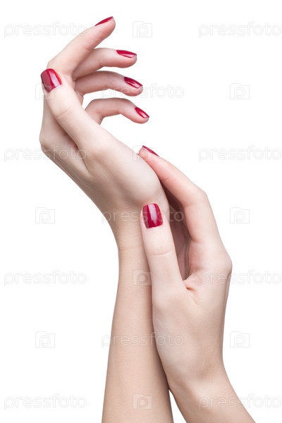 Руки с красным маникюром