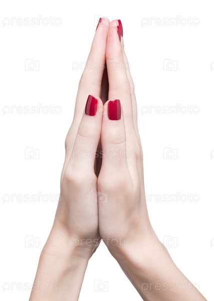 Руки с красным маникюром