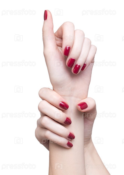Руки с красным маникюром
