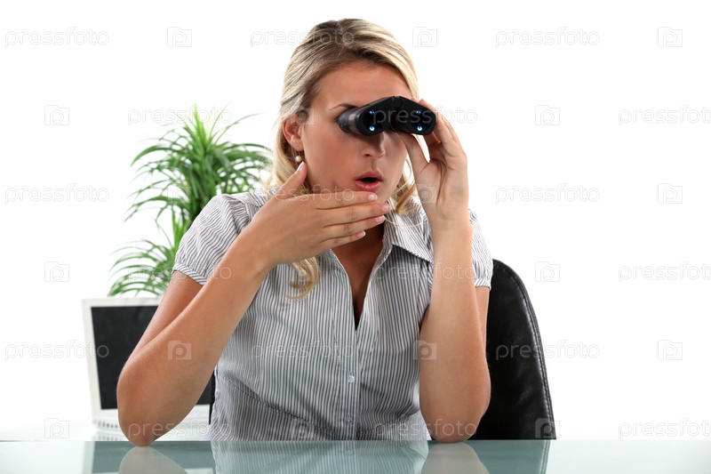 Офисный работник смотрит в бинокль