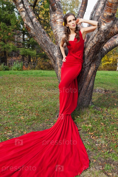 Красивая брюнетка в красном платье