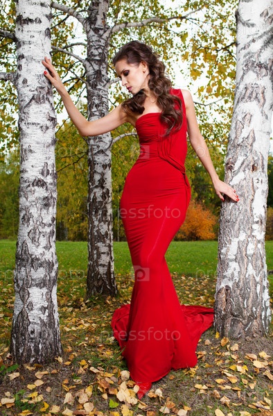Красивая брюнетка в красном платье