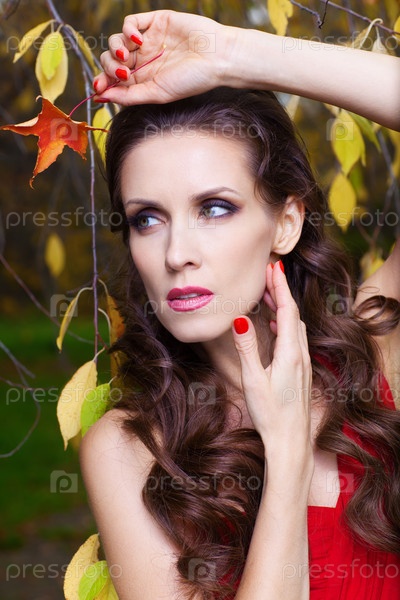 Красивая брюнетка в красном платье