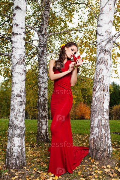 Красивая брюнетка в красном платье