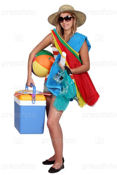 Девушка с вещами для пляжа