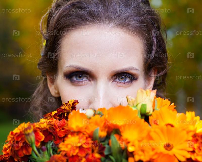 Красивая брюнетка с цветами