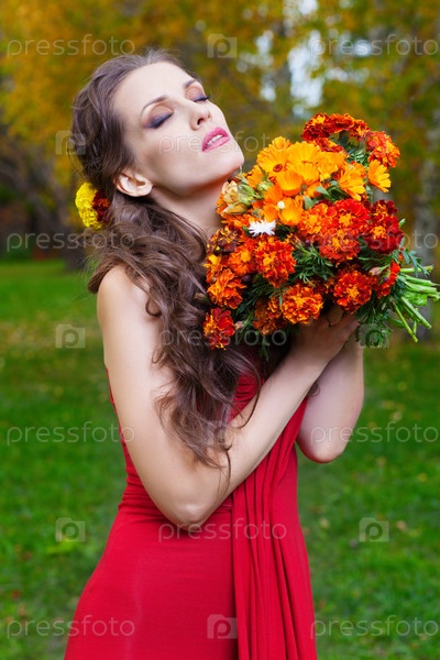 Красивая брюнетка в красном платье