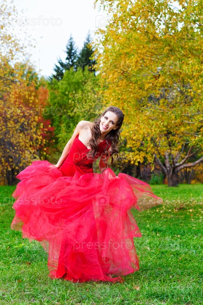 Красивая брюнетка в красном платье