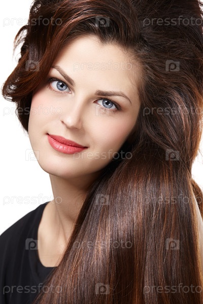 Женщина с длинными каштановыми волосами