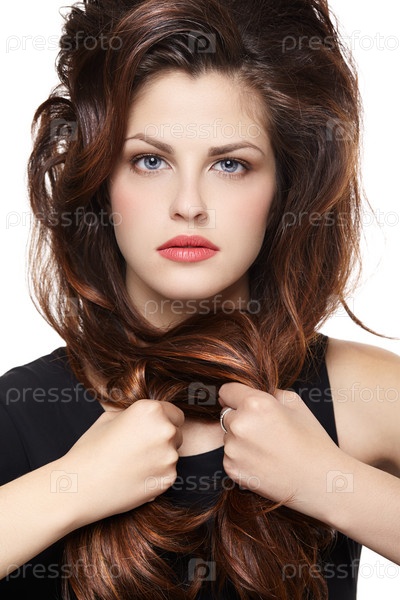 Женщина с длинными каштановыми волосами