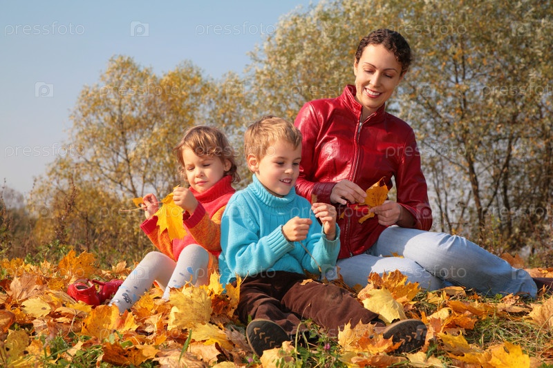Мать с детьми осенью в лесу