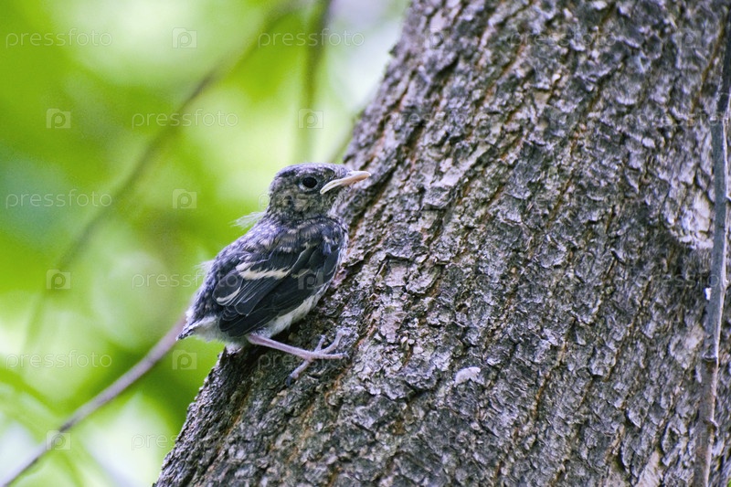 Птенец на стволе дерева