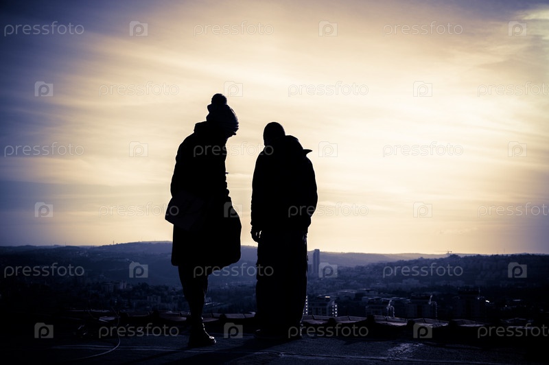 Силуэт молодой пары на закате