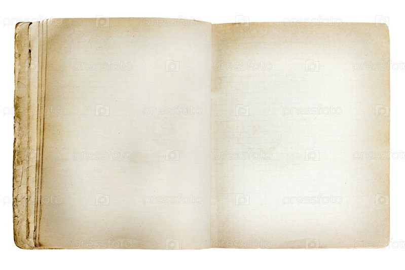 Старая открытая тетрадь, изолированная на белом фоне