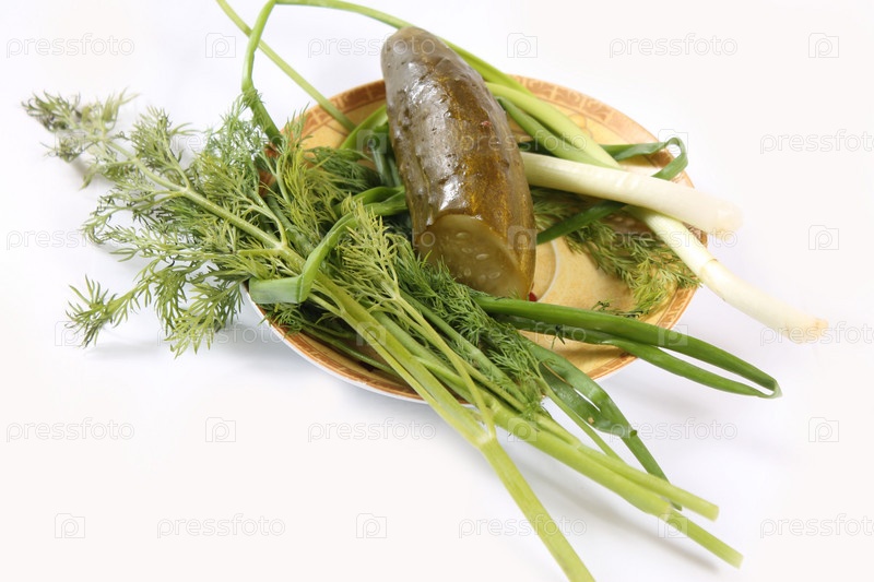 Зелень на тарелке на белом фоне